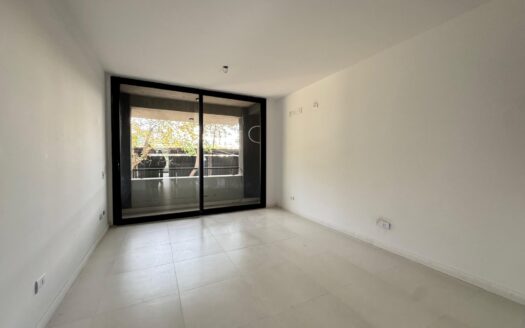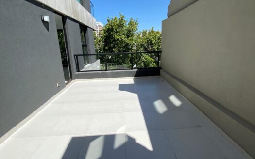 Departamento monoambiente con terraza, balcón y cochera cubiertas. Amplio ambiente con vista al frente, cocina inte
